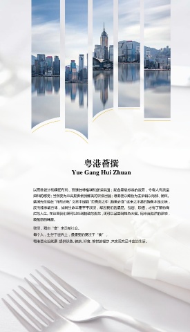 如归的感觉;当然要为来宾提供优质鲜美的饮食出品;粤港荟以鲍鱼为主菜辅以海鲜、潮菜。