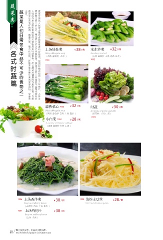各式时蔬篇 60% 上汤娃娃菜 ¥ 38 /例 水东芥菜 ¥ 32 /例 营养主食